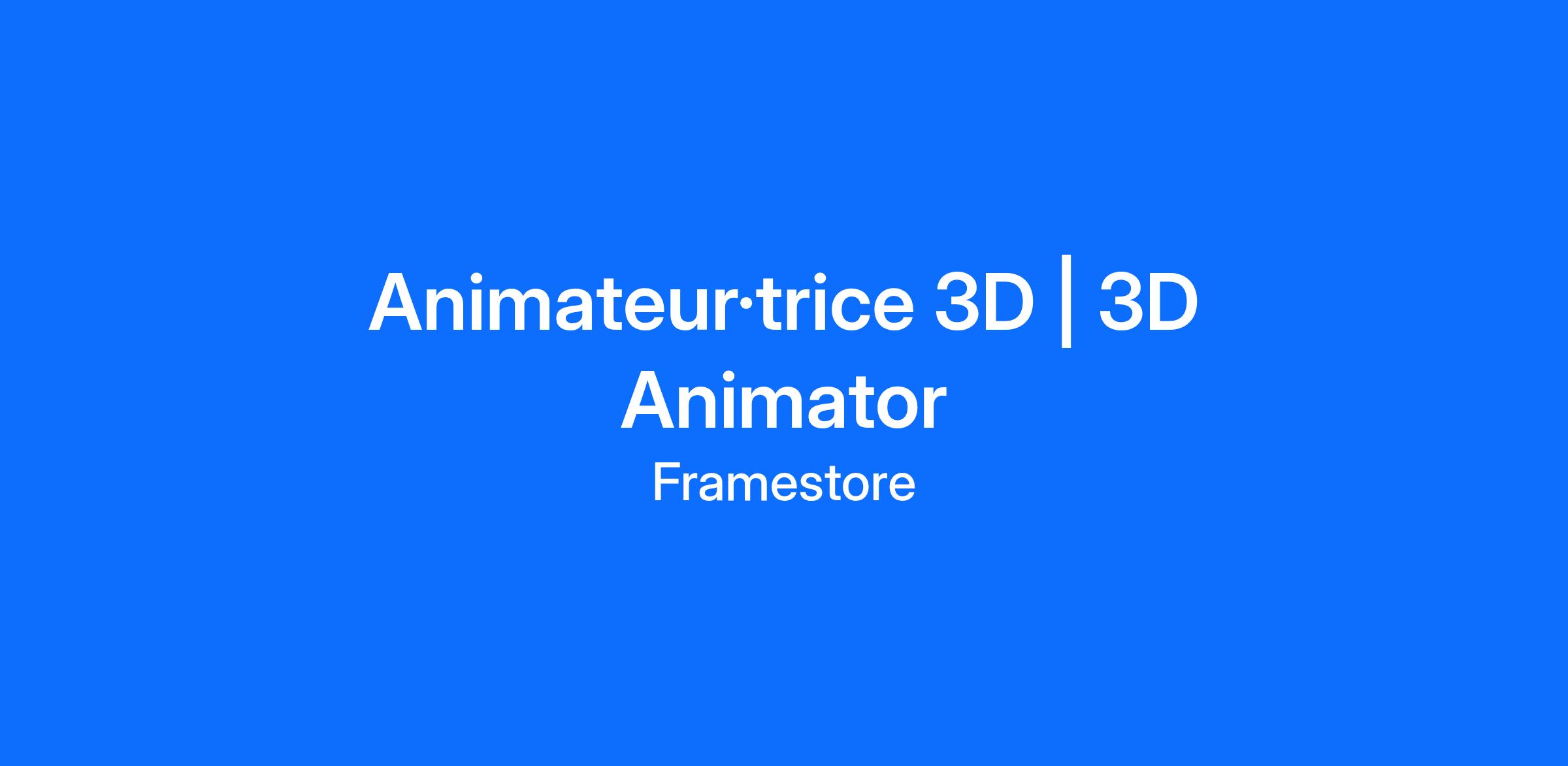 Animators produce the movements, actions and performances of three-dimensional computer graphic characters and objects for high-end VFX films.