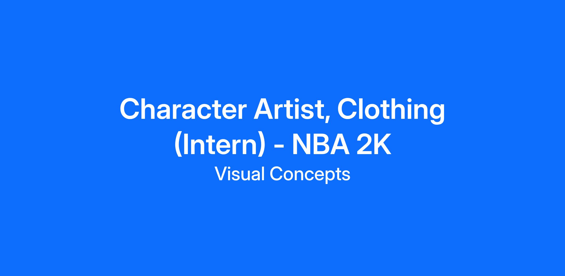 We are looking for a very hardworking and motivated, Character Artist Intern to join the NBA 2K character team. As a Character Artist Intern you will be working on a variety of tasks such as player likenesses, clothing, texture variants, hair and more.